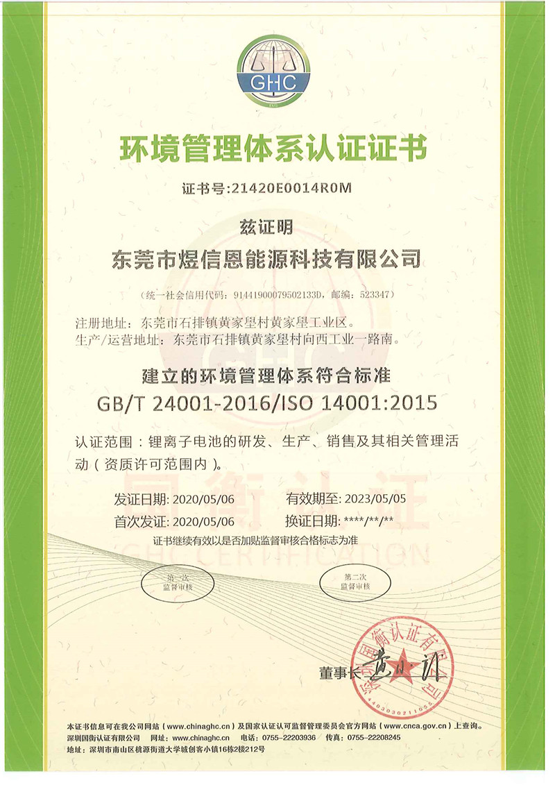 ISO14001:2015环境管理体系证书