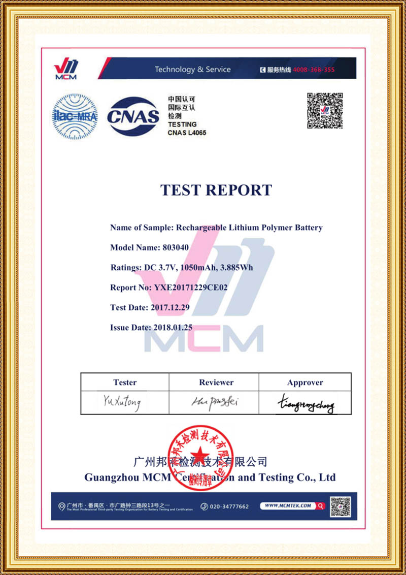 CE02 -Test Report 803040 IEC62133