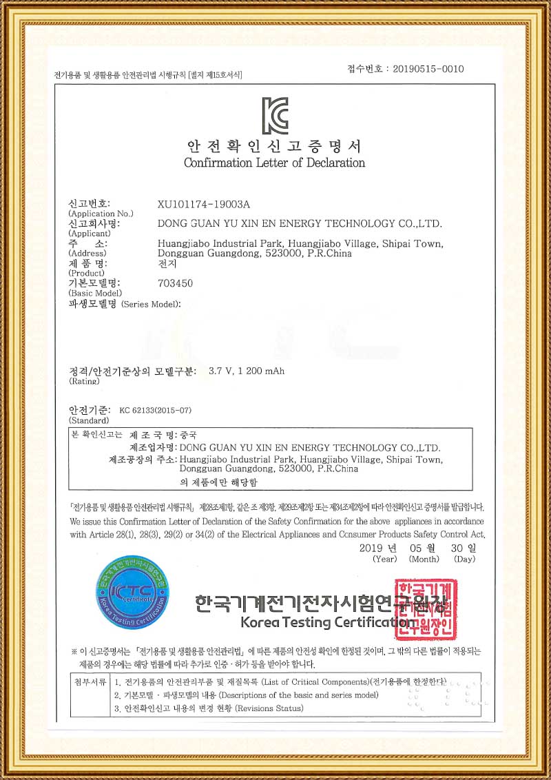 KC Cert. 703450